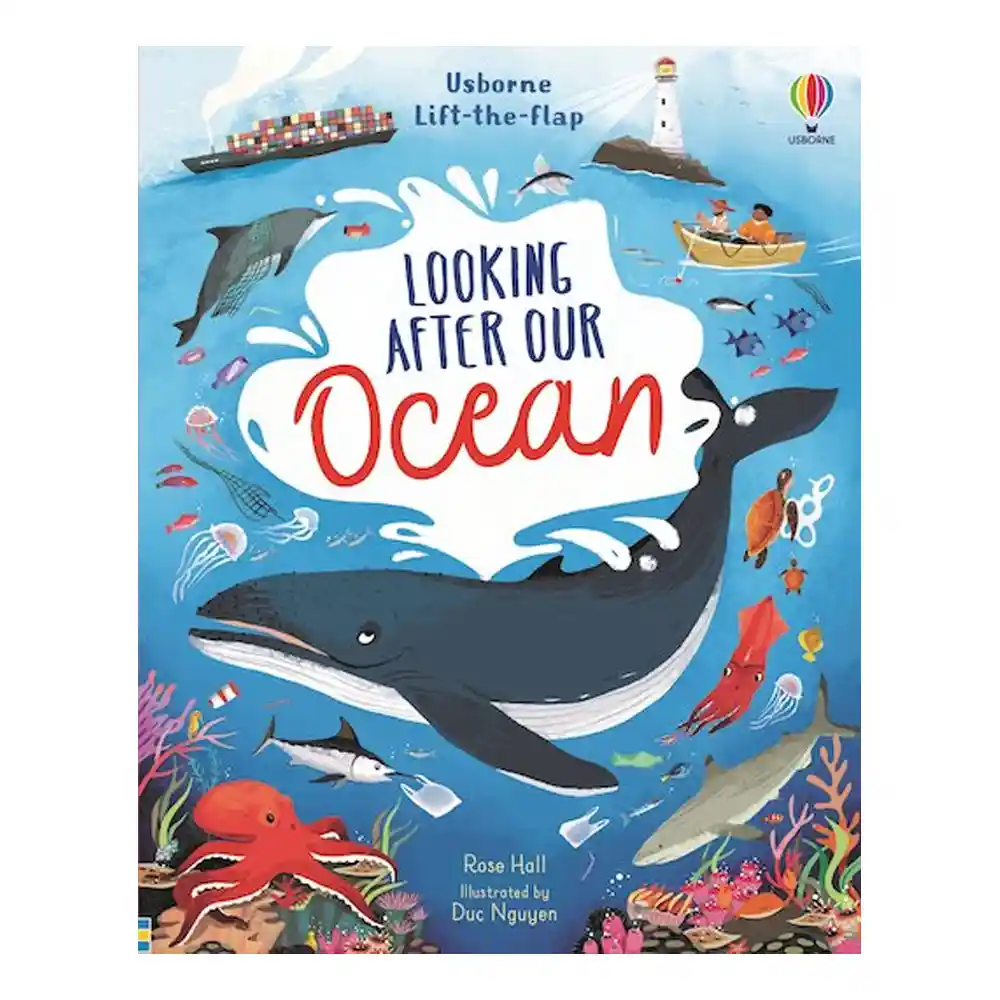 Lift-the-Flap Looking After Our Ocean by Rose Hall is a children’s nonfiction board book from Usborne’s Lift-the-flap series. Illustrated by Duc Nguyen, it introduces young readers to the ocean, the problems it faces, and the practical ways people can help protect marine life.