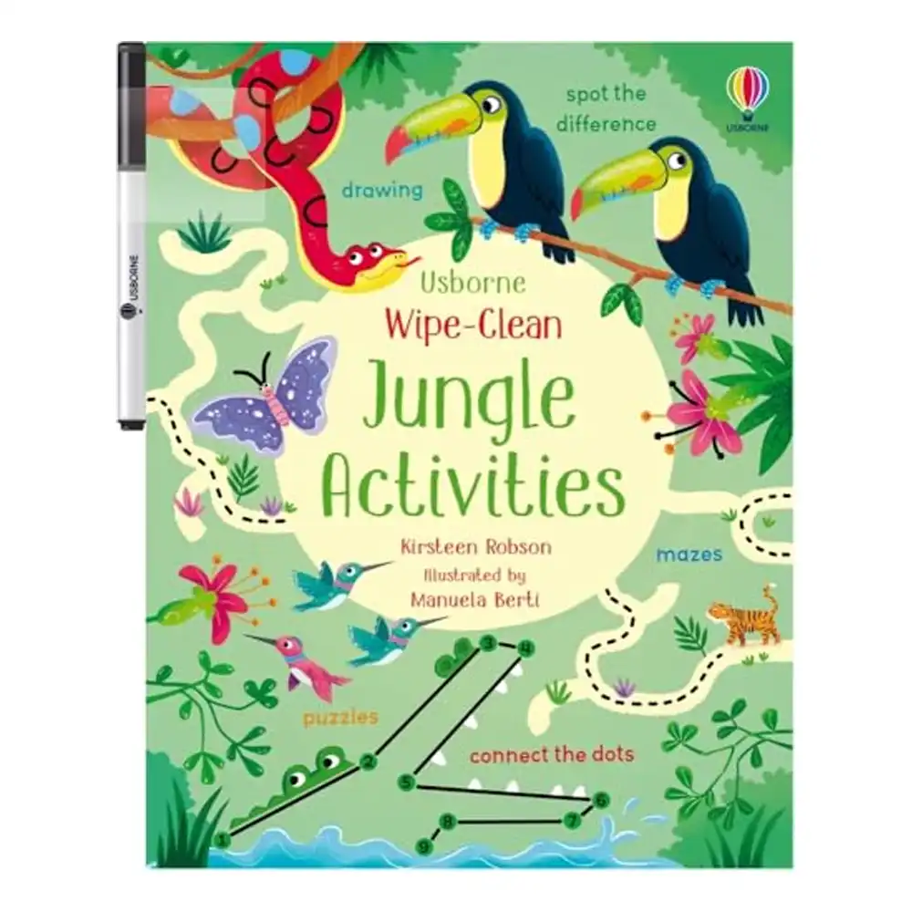 Keep little ones learning with Wipe-Clean Jungle Activities by Kirsteen Robson — a fun and reusable activity book packed with jungle-themed exercises.